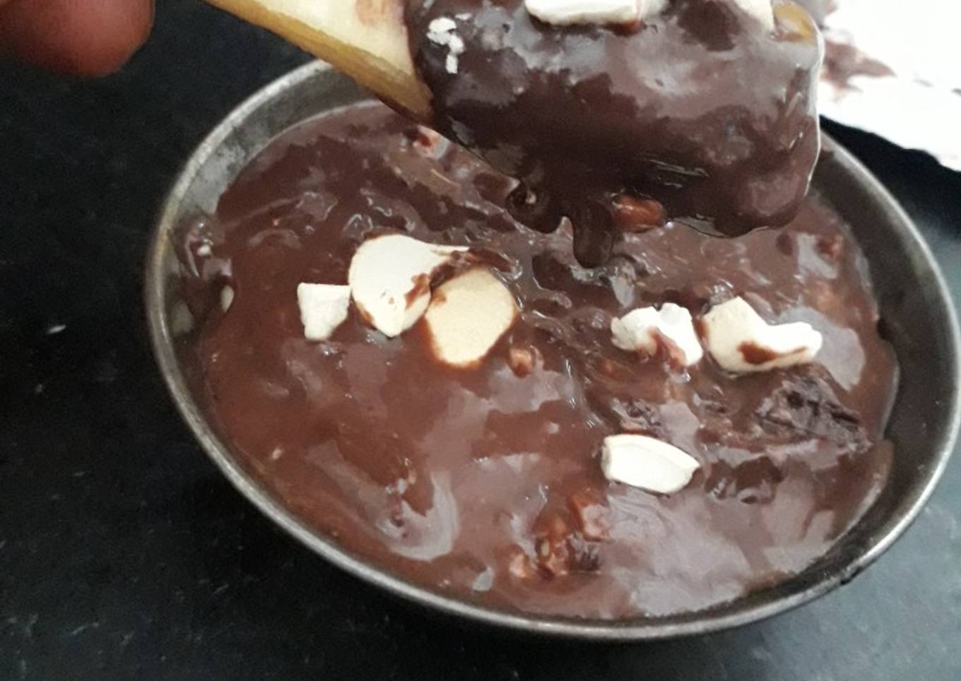 - When it's ready.Dip your own favourite chocolate sauce.I dip my own make chocolate sauce.Sprinkle some cashewnuts