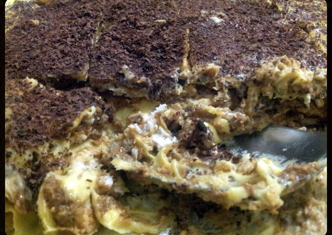 - Spread mascarpone mixture and dust with cocoa or chocolate crushed finely. Repeat layers. Cover more cocoa or chocolate the last layer.